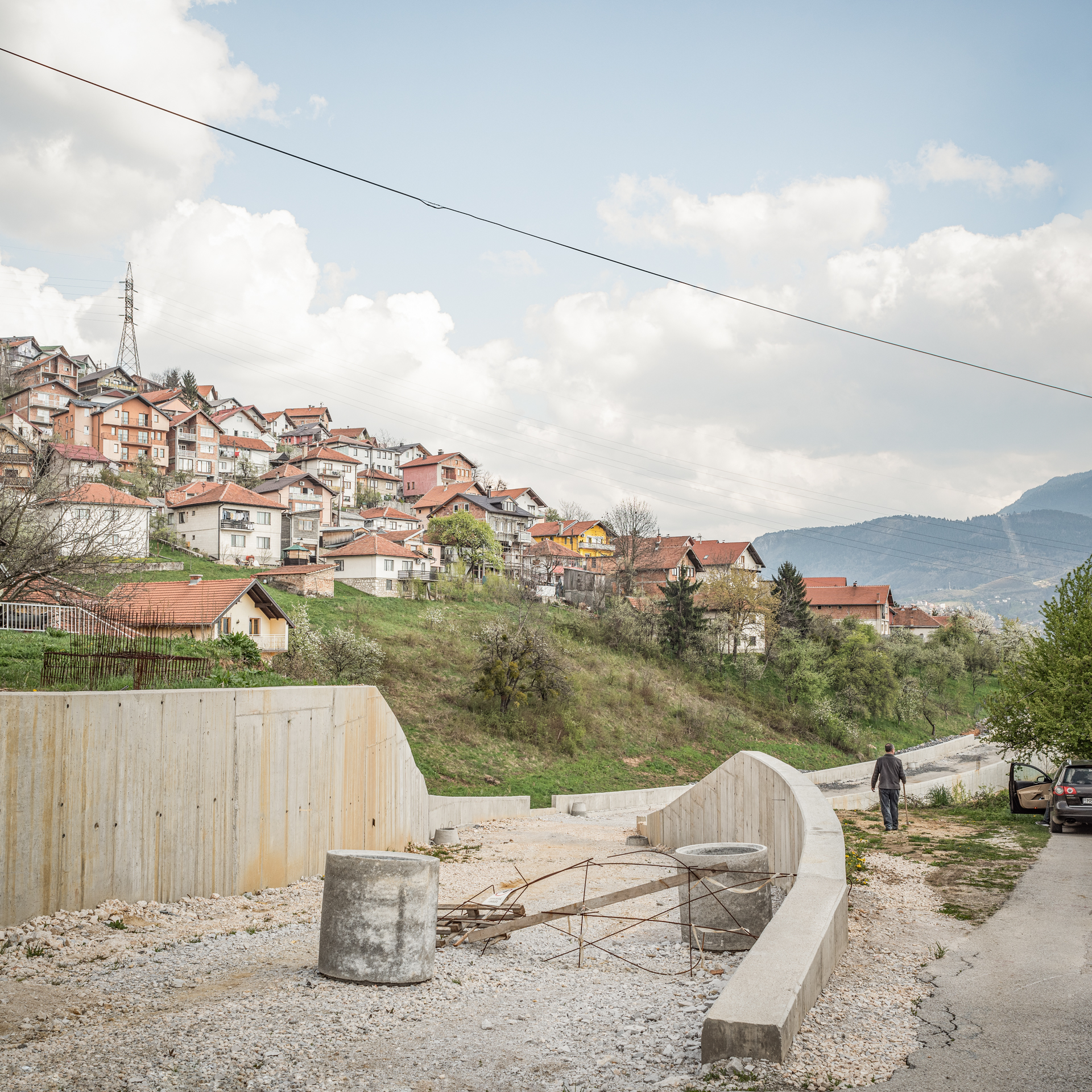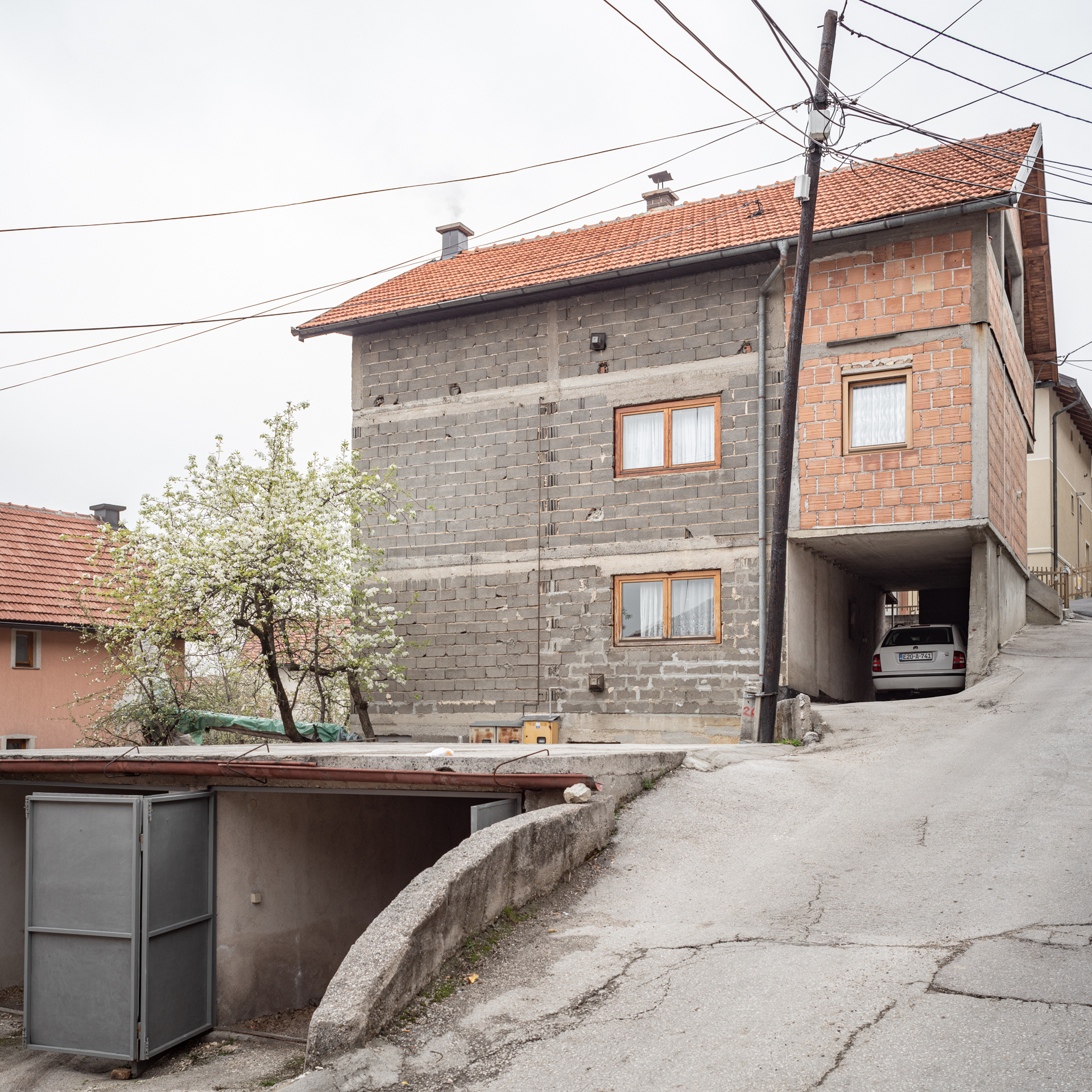 In some neighborhoods around the city center of Sarajevo red brick houses grow in all kinds of vernacular forms and shapes. Since there is no official plan for the development of these urban spaces, construction takes place as and where it suits, and an informal building culture has developed. When money becomes scarce during construction the often already inhabited building ruins are left behind for an indefinite period of time.